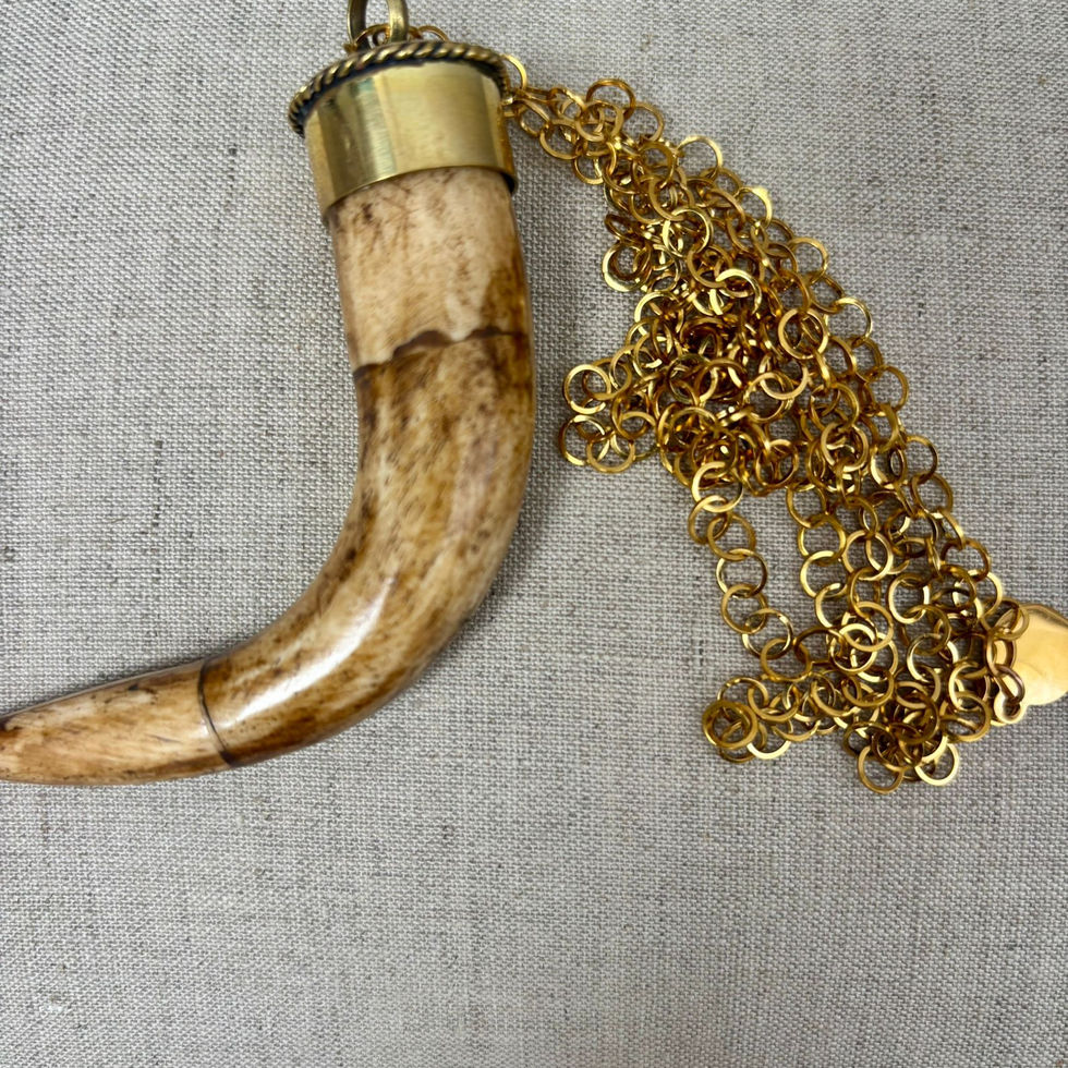 Collana corno lunghezza catena 90 cm. Corno in osso di bufalo cm. 6/8 cm catena in acciaio dorato senza chiusura